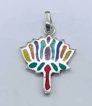 A colorful pendant depicting a unique artistic symbol of a Lotus. Allow the energy of purity, enlightenment and rebirth fill your energy when you wear this simple yet powerful pendant. Silver toned hardware 1 1/4″