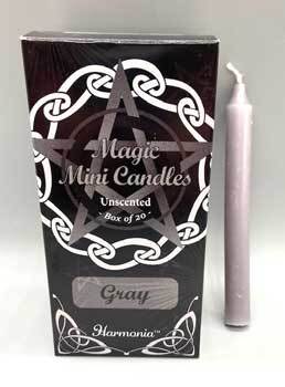 This is a box of 20 Gray 5″ chime candles. Gray chime candles are powerful additions to your candle magic and similar rituals when you are seeking neutrality, middle ground, also for Goddess, Moon, mystery, instincts, and the feminine. 5″ x 1/2″