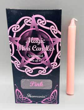 This is a box of 20 Pink 5″ chime candles. Pink is the color of emotion in magic, making these Pink Chime candles a wonderful tool for invoking emotion and inspiring it within your candle magic and spells. 5″ x 1/2″