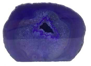 Deep rich shades of purple bring out the natural swirls of the Agate. Sliced and polished front with a raw Agate back with unique various Geode caves. Flat bottom to set safely on any surface. Between 1.5 – 1.8lbs with varying shapes and sizes. Seen in image is 4″ wide however sold by weight only and chosen at random.