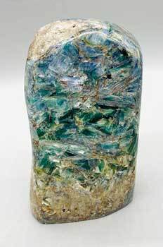 One of a kind Kyanite piece. Kyanite is a wonderful healing stone to have on any surface, giving off its beautiful energy and coloring. Kyanite energy may assist with calming, meditation, intuition, communication, fear and blocks. You will receive the one seen in the picture. 1.7lbs and measures 3 1/4″ tall and at its widest with its approximately 3 1/4″ From Pakistan