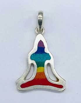 A colorful pendant depicting a unique artistic symbol of a buddha. Allow the energy of the enlightened one fill your energy when you wear this simple yet powerful pendant. Silver toned hardware 1″