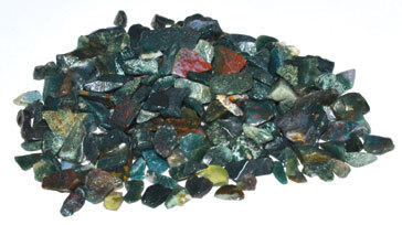 Blood stone tumbled chips. Blood stone has been known for its healing properties for thousands of years. Get yourself grounded while cleansing & detoxifying when using the energy of this powerful healer. Sold by weight only with chips sizes between 3-5mm. 1lb from India.