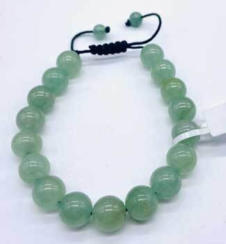 Adjustable Green Aventurine beaded bracelet. Green Aventurine makes a wonderful healing stone with benefits for the lungs, liver, sinuses, and heart. Chakra healing and balancing with its ability to remove blocks. 10mm