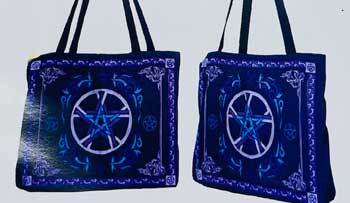 Pentacle Protection cotton tote bag with each of the 5 points of the pentacle having their own meaning. The points represent spirit, earth, air, fire, and water. The encasing circle is representative of the circle of life; it has no end and no beginning. 15.5″x17.5″x2.75″ 100% cotton and made in India. Sold individually