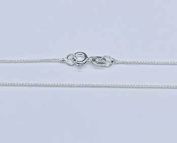 Sterling silver curb chain that has flattened, twisted and tightly interlocking links. 24″ long and marked .925 with sizes that may vary slightly