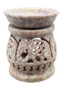 An elegant oil soapstone oil diffuser with a removable dish top. Elephants march all around the unique colors and patterns throughout this special piece.