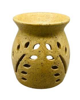 A simple yet elegant ceramic oil diffuser. Burn your favorite oil and watch as the light from within flicker out through the pattern around this burner. Size is approximate