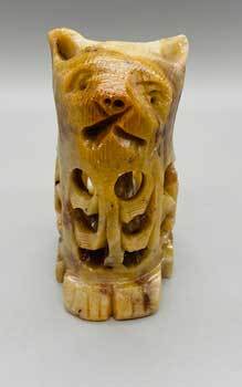 Carved cat out of soap stone. Detailed carving reveals a miniature cat within. 3″ with sizes, shapes, colors, and inclusions that may vary. From India