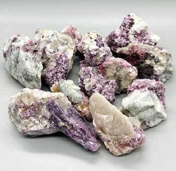 This is a flat of Lepidolite with Albite inclusions. A wonderful healing combination that will amaze you visually. Lepidolite is a mood stabilizer which helps with anxiety, balance, blocks, and finding your purpose in life, while Albite will work with the 3rd eye, helping with taking action, breaking free from fear, and inspire growth and change. Seen in picture is approximately 3lbs of rough Lepidolite w/Albite. Sizes, shapes, colors and inclusions will vary from box to box.