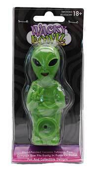 Fun Wacky bowlz Alien ceramic pipe. Hand painted, compact size, and measuring approximately 4 1/4″