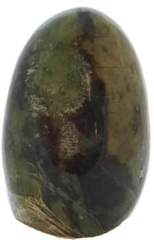 Serpentine polished free shape from China. Serpentine makes an exceptional meditation stone as it enhances your spiritual exploration. It helps you to find inner peace. Serpentine may help calm and stabilize the mind, wisdom retrieval, memory of past lives, clearing all chakras, anxiety, fears, open up psychic abilities, and will help calm a restless mind. It is an earthing stone which opens up new pathways for Kundalini energy. Free shape .40+ with varying shapes, sizes, colors and inclusions.