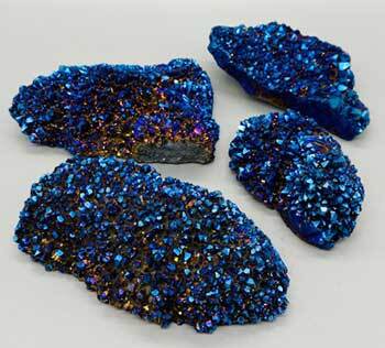 These amazing clusters are beaming with energy from all the points and crevasses. Finished with a process that highlights all the layers of these crystals and giving them a deep rich blue with a metallic rainbow effect. Incredible energy off of each unique piece. 5lbs sold by approximate weight only. From China