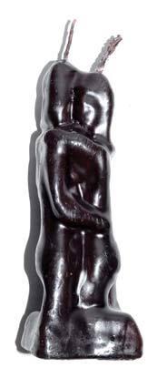 A candle of lovers embracing with dual wicks. Burn to ignite the passion between you and your lover. Can be used to bring someone back into your life who has strayed from the relationship. Black lovers candles may be useful for protection, banishing, wisdom, and for absorbing or projecting negative energy. Candle may need base leveling to stand straight.
