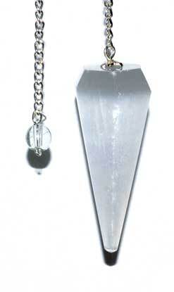 Selenite has energetic abilities to protect, clear and open your higher chakras, making this a great pendulum for divination or healing. 6-sided chakra pendulum 1.5″ – 2″ selenite piece.