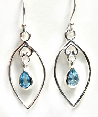 Dainty marquise shape dangle earrings set with a Blue Topaz gemstone. These light and beautiful earrings are sterling silver and stamped .925, hanging approximately 1 3/4″