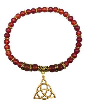 Stretchable Carnelian beaded anklet with a Triquetra. Gold toned charm and spacers.
