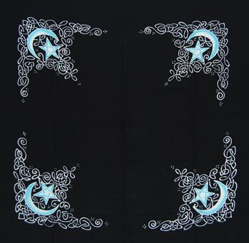 Perfect as a scarf or an altar cloth, this cloth depicts a pentacle and a crescent moon tucked into detailed Celtic knotwork. The quality of the artwork and the design of this cloth, makes for a wonderful cover for your altar or sacred space. 36″ x 36″