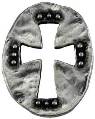 The cross-pocket stone features the cut out of a cross in a pewter stone. Pewter. 1″ x 5/8″ Made in USA