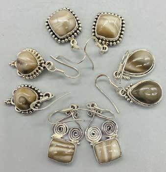 Flint stone dangle earrings in an array of stunning shapes. Flint is a form of quartz that comes in many colors and each earring will be unique. Flint is a grounding stone that may assist with prosperity, intuition, joy, motivation, new beginnings, past lives, physical healing and helps keep you in the present moment. Sterling silver and varying in length and style. Sold individually and our choice. Made in India.