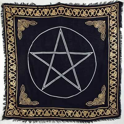 The perfect addition to your altar or sacred space, this altar cloth features a silver pentagram, surrounded by an elaborate pattern of Celtic knots. 36″ x 36″. 100% rayon.