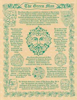 The Green Man ” The Green Man is a symbol pre – Christian in his origins, but later adopted by Gothic carvers and placed in thousands of church’s and cathedrals throughout Europe, from Ireland, Scotland to Russia.” Quote from poster. Poster with history and multiple depictions of the Green Man. 8 1/2″ x 11″.