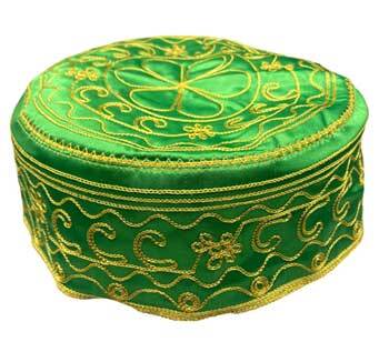 These beautifully made head coverings or hats are often worn by devotees of Orisha religions. The yellow and green coloring is representative of Orula the orisha associated with wisdom, knowledge, and divination. Soft and comfortable fabric.