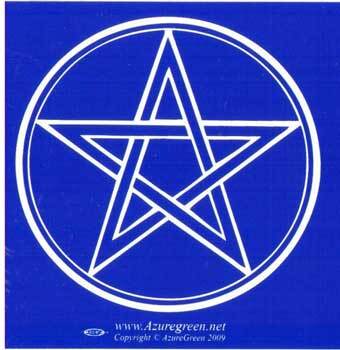 This is a 3″ x 3″ pentagram bumper sticker, portraying an interwoven pentagram in Blue on a white background.