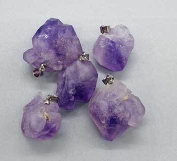 Amethyst flower cluster pendant with silver toned hardware. The natural raw finish of this amethyst allows you to feel all of its natural beauty. Amethyst may assist you with happiness, calming fear, emotional storms, courage, love, peace, addiction, dreams, helps with insomnia and nightmares, and considered the “stone of peace”. This is for the purchase of a single pendant with shapes, sizes, and colors varying from piece to piece.