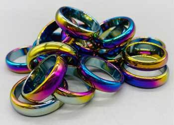Worn for balance and protection, and sometimes charged for spellwork and worn until they break, hematite rings can be a wonderful addition to your magical craft. Set of 50 Rainbow Hematite rings with sizes ranging from 6-10.