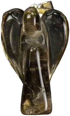 Sculpted from a piece of smoky quartz, each such smoky quartz angel pendant appears as though smoke has been captured within solid stone. No cord. 1 1/4″ x 3/4″