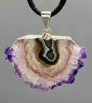 This Stalactite is a natural flower created in nature with Amethyst and Agate. Here it is created into a beautiful pendant revealing all its natural wonders. Each one of these pendants are unique and offer a wonderful energy healing to the wearer. Silver plated hardware and with varying shapes, sizes, and inclusions.