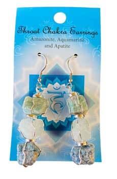 Align your chakras with these beautiful, natural stone, drop earrings. The thoat chakra helps with will power, and making choices. Made with amazonite, aquamarine, and apatite. Length is 2-2.5″
