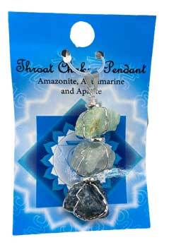 Align your chakras with this beautiful, natural stone, pendant. The thoat chakra helps with will power, and making choices. Made with amazonite, aquamarine, and apatite. Length is approx. 2″