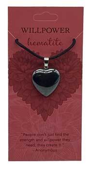 A willpower pendant with a hematite heart and cord. This powerful pendant will help you create strength and will power in your life.